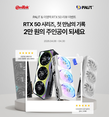 ÀÌ¿¥ÅؾÆÀÌ¿£¾¾(ÀÌÇÏ ÀÌ¿¥ÅØ)´Â PALIT, ÀÌ¿¥ÅØÀº 2026³â 4¿ù 6ÀϺÎÅÍ 4¿ù 30ÀϱîÁö ÁöÆ÷½º RTX 5060 ½Ã¸®Áî ÀÌ»ó ±×·¡ÇÈÄ«µå ¶Ç´Â ÇØ´ç ±×·¡ÇÈÄ«µå°¡ ÀåÂøµÈ PC¸¦ ±¸¸ÅÇÑ °í°´ °¡¿îµ¥ Ä¿¹Â´ÏƼ ¶Ç´Â ºí·Î±×¿¡ »çÁø 3Àå°ú 40ÀÚ ÀÌ»óÀÇ ¸®ºä¸¦ ÀÛ¼ºÇÑ ¼±Âø¼ø 30¸í ´ë»ó ³×À̹öÆäÀÌ 2¸¸¿øÀ» ÁõÁ¤ÇÏ´Â ¸®ºä À̺¥Æ®¸¦ ÁøÇàÇÑ´Ù.
