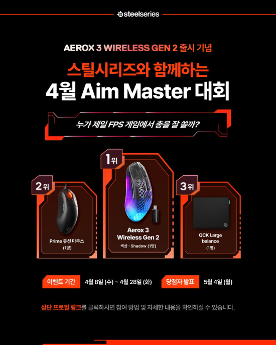 ¼¼°è ÃÖÃÊ °ÔÀÌ¹Ö ±â¾î ºê·£µå ½ºÆ¿½Ã¸®Áî(SteelSeries)°¡ ¹«¼± °ÔÀÌ¹Ö ¸¶¿ì½º ½ÅÁ¦Ç° ¡®¿¡¾î·Ï½º 3 ¹«¼± Gen 2(Aerox 3 Wireless Gen 2)¡¯ Ãâ½Ã¸¦ ±â³äÇÏ¿© ¸Å´Þ ¿¡ÀÓ ¸¶½ºÅÍ ´ëȸ À̺¥Æ®¸¦ ÁøÇàÇÑ´Ù°í ¹àÇû´Ù.