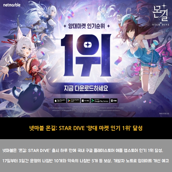[³Ý¸¶ºí] ¸ó±æ: STAR DIVE, ±¹³» ¾ç´ë ¸¶ÄÏ Àαâ 1À§ ±â³ä º¸..