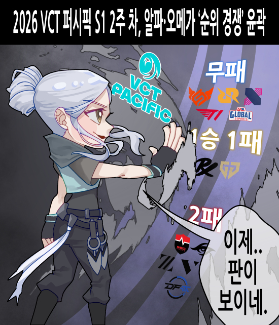ÇÑ ¾÷°è °ü°èÀÚ´Â ¡°¡¯2026 VCT ÆÛ½ÃÇÈ S1¡¯ 2ÁÖ Â÷ ¸ðµç °æ±â °á°ú ¾ËÆÄÁ¶¿Í ¿À¸Þ°¡Á¶¿¡¼­ »ó¡¤ÇÏÀ§±Ç ¡®¼øÀ§ °æÀ À±°ûÀÌ ³ª¿Ô´Ù¡±¶ó¸ç ¡°3ÁÖ Â÷ °æ±â °á°ú¿¡ µû¶ó ¼øÀ§°¡ ¹Ù²ð °¡´É¼ºµµ ÀÖ´Â ¸¸Å­, °¢ ÆÀÀÌ ¾î¶² ¼º°ú¸¦ À̾Áö ±ÍÃß°¡ ÁÖ¸ñµÈ´Ù¡±¶ó°í ¸»Çß´Ù.