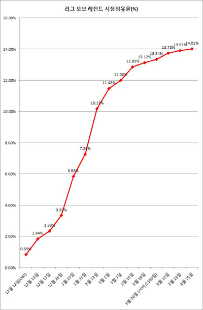 [¶óÀ̾ù] ¸®±× ¿Àºê ·¹Àüµå, PC¹æ Á¡À¯À² 1À§ ´Þ¼º |