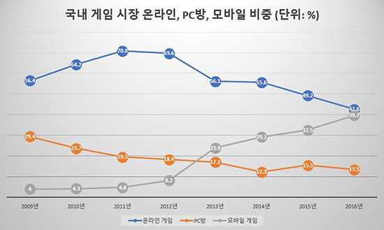 À̻Ӹ¸ ¾Æ´Ï¶ó °ú°Å ¡®¿Â¶óÀÎ °ÔÀÓ¡¯ Á¾ÁÖ±¹À̶ó ºÒ·È´ø ¿ì¸®³ª¶ó¿¡¼ ¡®¼Ë´Ù¿îÁ¦¡¯°¡ ½ÃÇàµÈ ÀÌÈÄ ¿Â¶óÀÎ °ÔÀÓ ºñÁßÀÌ Á¡Á¡ ÁÙ¾îµå´Â ¸ð½Àµµ È®ÀÎÇÒ ¼ö ÀÖ´Ù. ¡®°ÔÀӹ鼡¯¿¡ µû¸£¸é 2009³â ±¹³» °ÔÀÓ ½ÃÀå¿¡¼ ¿Â¶óÀÎ °ÔÀÓ ºñÁßÀº 56.4%, PC¹æÀº 29.4%, ¸ð¹ÙÀÏ °ÔÀÓÀº 4%¿´´Ù. 2010³â¿¡´Â ¿Â¶óÀÎ °ÔÀÓ ºñÁß 64.2%, PC¹æ 23.7%, ¸ð¹ÙÀÏ °ÔÀÓ 4.3%, 2011³â¿¡´Â ¿Â¶óÀÎ °ÔÀÓ 70.8%, PC¹æ 19.5%, ¸ð¹ÙÀÏ °ÔÀÓ 4.8%¸¦ ±â·ÏÇß´Ù.