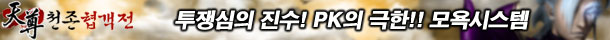 ¹«¸²ÀÇ ÀüÅõ¿¡¼ ºüÁú ¼ö ¾ø´Â PK ½ÂºÎÀÇ Áø¼ö¸¦ õÁ¸Çù°´Àü¿¡¼ ¸¸³ªº¼ ¼ö ÀÖ´Ù. Ãʺ¸ÀÚ Áö¿ªÀ» Á¦¿ÜÇÑ ¸ðµç Áö¿ª¿¡¼ »ó´ë¹æÀÇ µ¿ÀÇ ¾øÀÌ °ø°ÝÀÌ °¡´ÉÇÏ´Ù. ¹°·Ð °ø°Ý ¼ºÇâÀÌ ¸¹Àº À¯Àú¿¡°Ô´Â ±× ¸¸ÅÀÇ ÆÐ³ÎƼ°¡ ÁÖ¾îÁö°Ô µÈ´Ù. °ø°Ý Ƚ¼ö°¡ ´Ã¾î³¯¼ö·Ï ij¸¯Å͸í´Â ÇϾá»ö¿¡¼ »¡°£»öÀ¸·Î º¯ÇÏ°Ô µÇ¸ç, PKÁö¼ö°¡ ³ô¾ÆÁö°Ô µÇ¸é ½ºÅ³ ¹× ¾ÆÀÌÅÛ »ç¿ëÀÌ ºÒ°¡´ÉÇÏ°Ô µÈ´Ù. ÀϹÝÀûÀÎ PK ¿Ü¿¡µµ 1:1 ´ë°áÀÎ ºñ¹« ½Ã½ºÅÛµµ Á¸ÀçÇÑ´Ù. ¸¶À»°ú Çʵ带 ±¸ºÐÇÏÁö ¾Ê°í °áÅõ½ÅûÀÌ °¡´ÉÇϸç, »ó´ë¹æÀÌ ¼ö¶ôÇÏ¸é ¹Ù·Î °áÅõ°¡ ÁøÇàµÈ´Ù. °áÅõ Áß »ó´ë¹æÀÇ Ã¼·ÂÀÌ 1ÀÌ µÇ°Å³ª °£°ÝÀÌ ³Ê¹« ¸Ö¾îÁö¸é ÀÚµ¿À¸·Î °áÅõ°¡ Á¾·áµÈ´Ù. PK ½Ã½ºÅÛ¿¡¼ ÆÐ³ÎƼ°¡ Á¸ÀçÇÏ´Â ¸¸Å ½Â¸®ÀÇ °¨°ÝÀ» ¸¶À½²¯ ´©¸®°í, ¹Ý´ë·Î ÆÐ¹èÀÇ ¾´ÀÜÀ» »ïÄÑ¾ß ÇÏ´Â ¸ð¿å ½Ã½ºÅÛµµ Á¸ÀçÇÑ´Ù. PVP¿¡¼ ½Â¸®ÇÏ´Â °æ¿ì »ó´ë ij¸¯Å͸¦ 30Ãʰ£ ²ø°í ´Ù´Ò ¼ö ÀÖÀ¸¸ç, ¾ÆÀÌÅÛÀ» ÅëÇØ ´Ù¸¥ µ¿¹°·Î º¯½Å½Ãų ¼öµµ ÀÖ´Ù.
