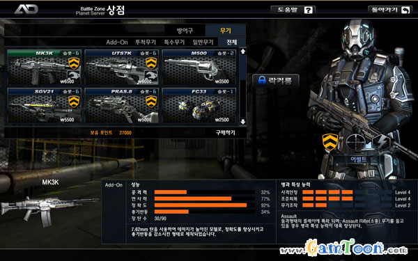 »óÁ¡¿¡ ÁغñµÈ ¹Ì·¡Çü ¹«±â¸¦ ±¸¸ÅÇÒ ¼ö ÀÖÀ¸¸ç, °¢ ¹«±â ¸¶´Ù °ø°Ý·Â, ¿¬»ç·Â, Á¤È®µµ, Ãѱâ¹Ýµ¿, Àåź ¼ö µîÀÌ ´Ù¸£¹Ç·Î ÁÖÀÇ ±í°Ô ºñ±³Çغ¸°í Àڽſ¡°Ô ¸Â´Â ¹«±â¸¦ ¼±ÅÃÇØ¾ß ÇÑ´Ù.