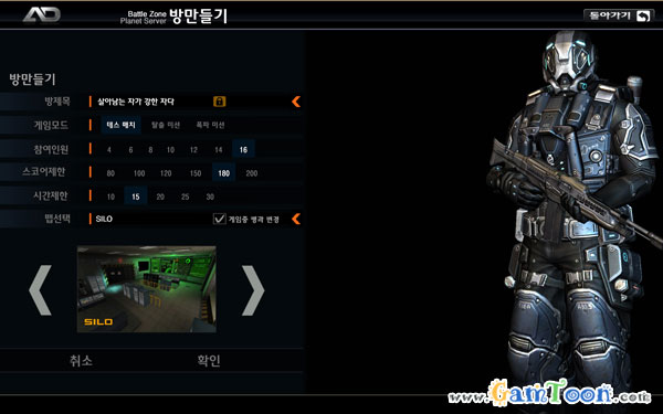 <¾î³ª´õµ¥ÀÌ>´Â °ÔÀÓ¸ðµå(µ¥½º¸ÅÄ¡, ÆøÆÄ¹Ì¼Ç, Å»Ãâ¹Ì¼Ç)¿¡ µû¸¥ °³¼º °ÇÑ ¸ÊÀ» Á¦°øÇÑ´Ù. ¸ðµç ¸ÊÀÌ 2~16¸í±îÁö Âü¿© °¡´ÉÇÏ´Ù.