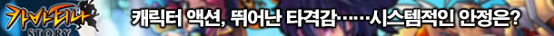 Ä«¹ÙƼ³ª ½ºÅ丮´Â ¾×¼Ç MMORPG¸¦ Ç¥¹æÇϰí ÀÖ´Ù. ¸»ÇÏÀÚ¸é ¾×¼Ç¼ºÀÌ ¶Ù¾î³ MORPGÀÇ ¾×¼Ç¼ºÀ» MMORPG¿¡µµ µµÀÔÇϰڴٴ À̾߱âÀε¥, ±× ¶§¹®¿¡ ¿ÀÇ Àü¿¡µµ ³Ø½¼ Ãø¿¡¼´Â °è¼ÓÇØ¼ Ä«¹ÙƼ³ª ½ºÅ丮°¡ °®Ãß°í ÀÖ´Â ¾×¼Ç¼º°ú Ÿ°Ý°¨¿¡ ´ëÇØ ¾ð±ÞÇß´Ù. ±× ¸¸Å ¾×¼Ç¿¡ ´ëÇÑ ÀڽۨÀÌ ÀÖ´Ù´Â °ÍÀÌ´Ù.