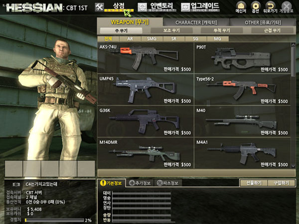ÀüüÀûÀ¸·Î Çì½ëÀÇ ÀÎÅÍÆäÀ̽º´Â ´Ù¸¥ ¹Ð¸®Å͸® FPS°ÔÀÓµé°ú ´Ù¸¥ Á¡ÀÌ ¾ø´Ù. °ÔÀÓ¿¡ Á¢¼ÓÇÑ µÚ ¼¹ö¿Í ä³ÎÀ» ¼±ÅÃÇÏ¸é ·Îºñ¿¡ ÀÔÀåÇÒ ¼ö ÀÖ°í, ±×°÷¿¡¼ °³¼³µÈ ¹æÀ̳ª ÀÚ½ÅÀÌ ¹æÀ» °³¼³Çؼ ¸ÊÀ» ¼±ÅÃÇÏ°í °ÔÀÓÀ» ½ÃÀÛÇÏ´Â ¿Â¶óÀÎ FPS°ÔÀÓÀÇ ÀüÇüÀûÀÎ ÀÎÅÍÆäÀ̽º¿Í Çϵî Â÷À̰¡ ¾ø´Â °ÍÀÌ´Ù. Ãѱ⳪ ´Ù¸¥ ¾ÆÀÌÅÛµéÀ» ¹æ ¾È¿¡¼ »óÁ¡À» ÅëÇØ ±¸ÀÔÇϰí ÀåÂøÇÏ´Â °úÁ¤ µî, ÀÌÀü ¿Â¶óÀÎ ¹Ð¸®ÅÍ·¹ FPS¸¦ Çß´ø À¯ÀúµéÀ̶ó¸é º°´Ù¸¥ ¾î·Á¿ò ¾øÀÌ °ÔÀÓÀ» ÁغñÇϰí ÁøÇàÇÒ ¼ö ÀÖ´Ù.