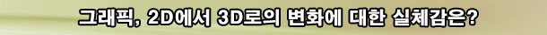 »ç½Ç ÀÌ·± ü°¨µµ°¡ ¹Ù²î´Â °ÍÀº ¾î¼¸é ÇѼø°£ÀÏ ¼ö ÀÖ´Ù. ÀüÀÛÀÇ ´À³¦¿¡ ³Ê¹« Àͼ÷ÇØÁ® Àֱ⠶§¹®¿¡ 3DÈ¿¡ ÀûÀÀÀÌ µÉ ½Ã°£ÀÌ ÇÊ¿äÇÑ °ÍÀÌ´Ù. ¶§¹®¿¡ ¾î¼¸é À¯ÀúµéÀÌ ÀüÀÛÀÇ ´À³¦À» ÀØ°í ½ºÅ¸2ÀÇ 3DÈ¿¡ Àͼ÷ÇØÁö±â¸¸ ÇÑ´Ù¸é °ÔÀÓ Àü°³ÀÇ ¼Óµµ°¨¿¡ ´ëÇÑ ¿ì·Á´Â »ç¶óÁúÁöµµ ¸ð¸£´Â °ÍÀÌ´Ù. ´Ü, ÃÖÃÊÀÇ, ±×¸®°í º£Å¸Å×½ºÆ®°¡ ½ÃÀÛµÈ Áö ¾ó¸¶ Áö³ªÁö ¾ÊÀº ÇöÀç·Î½á´Â ÀüÀÛ°úÀÇ ¼Óµµ°¨¿¡ ´ëÇÑ ±«¸®°¨Àº ÃæºÐÈ÷ ÀÖ´Â °ÍÀÌ »ç½ÇÀÌ´Ù.