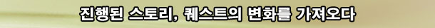 »õ·Î Ãß°¡ µÈ Äù½ºÆ® Áß¿¡´Â ¿¬ÃâÀÌ °¡¹Ì µÈ Äù½ºÆ®°¡ ´ë°Å Ãß°¡ µÇ¾î ±íÀº ÀλóÀ» ³²±â°í ÀÖ´Ù. ¿¹¸¦ µé¾î ²¿¸¶ ·¦Å͸¦ Á¶Á¾ÇÏ¿© ÁÙ±¸·ìÀ» Å»ÃâÇØ¾ß ÇÏ´Â Äù½ºÆ®, ºñÇà±â¸¦ Ÿ°í Àû±ºÀ» °ÝÃß½ÃŰ´Â Äù½ºÆ®, ÀºÇà ±Ý°í¸¦ ÅÍ´Â Äù½ºÆ®, ³»°¡ ¹Ì³¢°¡ µÇ¾î ´Á´ëÀΰ£ ¹«¸®¸¦ À¯ÀÎÇÏ´Â Äù½ºÆ® µî »ç³ÉÀ̳ª ¼öÁý ¿Ü¿¡ ij¸¯ÅͰ¡ ÇÒ ¼ö ¾ø´Â Ưº°ÇÑ ÇൿÀ» ÀϽÃÀûÀ¸·Î °¡´ÉÇÏ°Ô ÇÔÀ¸·Î½á »ö´Ù¸¥ Àç¹Ì¸¦ ´À³¥ ¼ö°¡ ÀÖÀ¸¸ç, Àß ´Ùµë¾îÁø ¿¬ÃâÀ» ÅëÇØ ½Ì±Û Ç÷¹À̸¦ ÇÏ´Â µíÇÑ ´À³¦µµ ¹ÞÀ» ¼ö ÀÖ¾ú´Ù. ÇÑ ¸¶µð·Î, Äù½ºÆ®ÀÇ ¼öÇà ¹æ½ÄÀÌ ´Ù¾çÇØÁö°í ¸ôÀÔµµ°¡ ³ô¾ÆÁø °ÍÀÌ´Ù.