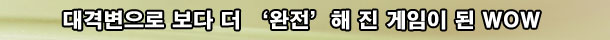 Çö´ë MMORPGÀÇ ¹ÙÀ̺íÀÌÀÚ Á¤¼®ÀÌ µÈ WOW. Àü ¼¼°è¿¡¼ °¡Àå ¸¹Àº À¯·á ȸ¿øÀ» º¸À¯ÇÑ ºí¸®Àڵ忣ÅÍÅ×ÀÎ¸ÕÆ®ÀÇ ¸ÞÀÎ ¿Â¶óÀÎ °ÔÀÓ. ÇÏÁö¸¸ ¸¹Àº ½ÅÀÛµéÀÇ µîÀå°ú ÄÜÅÙÃ÷ ºÎÁ·À̶ó´Â ¾ÇÀ縦 ¸¸³ª ±¹³»¿¡¼´Â ¿¹Àü°ú °°Áö ¾ÊÀº Àαâ¿Í È£ÀÀµµ¸¦ º¸À̰í ÀÖ´Ù. ±× ¸¸Å °ÔÀÓÀ» °è¼Ó ÇØ ¿Ô´ø À¯ÀúµéÀÌ ¾Æ½¬¿òÀ» º¸À̰í ÀÖ´Â ÇöÀç. °ú°ÅÀÇ ¿µ±¤À̶ó´Â ¡®¹ÝÀü¡¯À» °¡Á® ¿Ã È®ÀåÆÑÀÌ µîÀåÇß´Ù. ¹Ù·Î, ±¤´ëÇÑ WOWÀÇ ¼¼°è°üÀ» µÚÈçµé ±×°Í. ¡®´ë°Ýº¯¡¯ÀÌ´Ù.