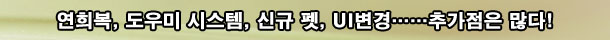 Á÷Á¢ÀûÀÎ ¼öÁý¿å°ú ¼ÒÀ¯¿åÀ» ÀÚ±ØÇÏ´Â ¿ä¼ÒµéÀº ´õ ¸¹´Ù. ½ºÆä¼È º¹ÀåÀÎ ¿¬Èñº¹ÀÇ µîÀå°ú »õ·Î¿î ÆêÀÇ ¾÷µ¥ÀÌÆ®´Â Èï¹Ì¸¦ µ¸¿ì´Â ÄÜÅÙÃ÷ÀÓ¿¡ Ʋ¸²ÀÌ ¾ø´Ù. õÁ·°ú ¸¶Á·ÀÇ ·¹±â¿Â ¸ÁÅäÀÇ µîÀå ¿ª½Ã °ÔÀÓÀÇ ¼ö¸íÀ» À¯ÁöÇÏ°Ô ¸¸µå´Â ÄÜÅÙÃ÷°¡ ¾Æ´Ï¶ó°í ÇÏ´õ¶óµµ, ÇöÀç ¾÷µ¥ÀÌÆ®¸¦ ´õ¿í dz¼ºÇÏ°Ô ¸¸µå´Â ¡®°ç°¡Áö¡¯µéÀ̶ó°í ÇÒ ¼ö ÀÖ´Â °ÍÀÌ´Ù.