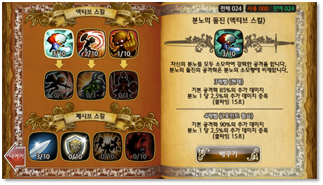 1. ¸ð¹ÙÀÏÀÇ Æ¯¼º¿¡ ¸ÂÃç ½ºÅ³¿ÜÀÇ ¹öưÀ» °ú°¨È÷ »ý°¢ÇÔÀ¸·Î½á °ÔÀÓ ÇǷεµ¸¦ ³·Ãß°í Á¶ÀÛÀÇ °£ÆíÈ¿¡ ÁÖ·ÂÇß´Ù. »óȲ¿¡ µû¶ó 3°³ÀÇ ½ºÅ³ ¹öư°ú ¾ÆÀÌÅÛ ¹öư Áß ÇѰ¡Áö¸¦ ¼±ÅÃÇÏ¿© ´©¸£¸é µÇ´Â °£´ÜÇÑ Á¶ÀÛ¹ýÀº ½ºÆ®·¹½º ¾øÀÌ Àå½Ã°£ Ç÷¹À̸¦ °¡´ÉÇÏ´Ù.