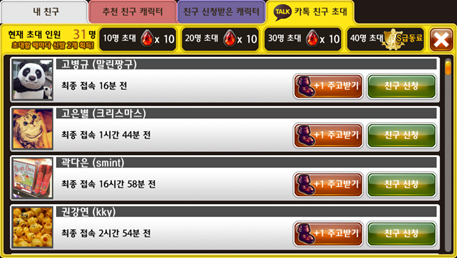 1. ´Ù¸¥ À¯Àú¸¦ Ä£±¸·Î µî·ÏÇÏ¿© ÇÔ²² Ç÷¹À̸¦ Áñ±æ ¼ö ÀÖ´Ù. ¶Ç, Ä£±¸ÀÇ Á¤º¸¸¦ »ìÆì º¼ ¼öµµ ÀÖÀ¸¸ç, ÇÔ²² ¸ðÇèÇÑ Ä£±¸¿Í ¾ÆÀÌÅÛÀ» ±³È¯ÇÒ ¼ö ÀÖ´Â ¿ìÁ¤Æ÷ÀÎÆ®¸¦ ³ª´ ¼ö ÀÖ´Ù.