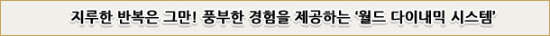 ¡®¿ùµå ´ÙÀ̳»¹Í ½Ã½ºÅÛ¡¯Àº °°Àº ½ºÅ×ÀÌÁö¸¦ ¹Ýº¹ÇÏ´õ¶óµµ ÇØ´ç ¿ùµåÀÇ ±¸¼º¿ä¼Ò°¡ ¸Å¹ø º¯ÇÏ´Â ½Ã½ºÅÛÀ» ¸»ÇÑ´Ù. ÀÌ·¯ÇÑ º¯È´Â ÀÌ¿ëÀÚÀÇ Ç÷¹ÀÌ¿¡ ÀÖ¾î »õ·Î¿î ¼±ÅÃÁö¸¦ Á¦°øÇϰųª, Àü¼úÀûÀÎ º¯È¸¦ À¯µµÇÏ´Â °á°ú·Î À̾îÁ® ¸Å¹ø ´Ù¸¥ ¹æ½Ä°ú ÆÐÅÏÀÇ °ø·«ÀÌ ³ªÅ¸³´Ù. Áï, ±â°èÀûÀ¸·Î Ç÷¹À̸¦ ¹Ýº¹½ÃŰ´Â °ÍÀÌ ¾Æ´Ï¶ó, ÀÌ¿ëÀÚ¿¡°Ô ¼±ÅñÇÀ» ÁÖ°í ±× ¼±Åÿ¡ µû¶ó °á°ú°¡ ´Þ¶óÁöµµ·Ï ÇÏ´Â °ÍÀÌ ¡®¿ùµå ´ÙÀ̳»¹Í ½Ã½ºÅÛ¡¯ ÀÎ °ÍÀÌ´Ù.