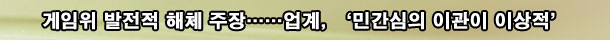 ¡â °ÔÀÓÀ§¿¡ ´ëÇÑ ¾÷°èÀÇ ºÒ¸¸Àº ¾îÁ¦ ¿À´ÃÀÇ ÀÏÀÌ ¾Æ´Ï´Ù. ÀÌÁ¦´Â ±¹È¸ ±¹Á¤°¨»ç¼ ¹ßÀüÀû ÇØÃ¼¸¦ °í·ÁÇØ¾ß ÇÑ´Ù´Â ±Ø´ÜÀû ÇØ°áÃ¥±îÁö ¾ð±ÞµÇ°í ÀÖ´Â »óȲÀÌ´Ù.