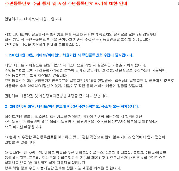SKÄÄÁî´Â ³×ÀÌÆ®¿Â 3500¸¸ ¸íÀÇ È¸¿ø Á¤º¸°¡ À¯ÃâµÈ µÚ Àڻ簡 º¸À¯Çϰí ÀÖ´ø Áֹεî·Ï¹øÈ£¸¦ ÀüºÎ Æó±âÇϰí ȸ¿ø µ¥ÀÌÅͺ£À̽º¸¦ ¿ÏÀüÈ÷ ¾ø¾Ö¹ö¸®´Â Á¤Ã¥À» ¹ßÇ¥ÇÏ´Â °¼ö¸¦ µ×´Ù. ±×·¯³ª ÇöÇà¹ý»ó °ÔÀÓ¾÷üµéÀº °³ÀÎÁ¤º¸ ÃÖ¼ÒÈ¿¡ µû¸¥ ÀÌ·± ¡®°á´Ü¡¯ÀÌ ºÒ°¡´ÉÇÏ´Ù. Áֹεî·Ï¹øÈ£¿Í À¯ÀúÀÇ ÁÖ¼Ò µî °³°³ÀÎÀÇ Á¤º¸¸¦ ÃÖ´ëÇÑ ¹ÞÁö ¸»¶ó´Â °³ÀÎÁ¤º¸º¸È£¹ýÀÌ ÀÖÁö¸¸, û¼Ò³âº¸È£¹ý, Á¤º¸Åë½Å¸Á¹ýÀÌ Áֹεî·Ï¹øÈ£°¡ ÀÖ¾î¾ß ½ÃÇà・°ü¸® °¡´ÉÇϱ⠶§¹®ÀÌ´Ù.