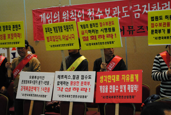 ¹®Á¦´Â ÀÌ °°Àº °ÔÀÓ»ê¾÷ÁøÈï¿¡ °üÇÑ ¹ý·ü ½ÃÇà·É °³Á¤(¾È)¿¡ ´ëÇØ °¢ ¾ÆÀÌÅÛ°Å·¡Áß°è»çÀÌÆ®¿Í ¾ÆÄÉÀÌµå ¾÷°è°¡ Å©°Ô ¹Ý¹ßÇϰí ÀÖ´Ù´Â Á¡ÀÌ´Ù. °øÃ»È¸¿¡ Âü¼®ÇÑ À̵éÀº ÀÌ °°Àº ³»¿ë¿¡ ¹Ý´ë ÀÔÀåÀ» Ç¥¸íÇϸç ħ¹¬½ÃÀ§¿Í ÇÔ²² ÀڽŵéÀÇ ÀÔÀåÀ» È£¼ÒÇÏ´Â ¼º¸í¹®À» »Ñ¸®´Â µî °ÔÀÓ»ê¾÷ÁøÈï¿¡ °üÇÑ ¹ý·ü ½ÃÇà·É °³Á¤(¾È)¿¡ ´ëÇÏ °ÇÏ°Ô ¹Ý¹ßÇÏ´Â ¸ð½ÀÀ» º¸¿´´Ù.