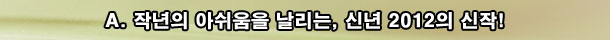 ¸»ÇÏÀÚ¸é, ±â´ëÀÛµéÀÇ ·±Äª ½Ã±â¿¡ ´ëÇÑ ½Å·Úµµ´Â ´õ¿í ¶³¾îÁ³Áö¸¸, ±×°Í°ú´Â ¹«°üÇÏ°Ô 2012³âÀÇ ½ÅÀ۵鿡 ´ëÇÑ ±â´ë°¨Àº ´õ¿í »ó½ÂÇß´Ù°í³ª ÇÒ±î!