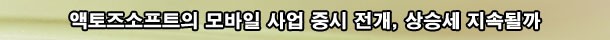¡®Â÷¼¼´ë °ÔÀÓ ½ÃÀ塯À¸·Î ºÒ¸®´Â ¸ð¹ÙÀÏ °ÔÀÓ ½ÃÀåÀ¸·ÎÀÇ ÁøÃâÀÌ ¾×ÅäÁî¼ÒÇÁÆ®ÀÇ »ó½Â¼¼¿¡ ³¯°³¸¦ ´Þ¾ÆÁÖ´Â °ÝÀÌ µÇ°í ÀÖ´Â °ÍÀÌ´Ù. Áö³ 3°³¿ù µ¿¾È ¾×ÅäÁî¼ÒÇÁÆ®´Â 43.81% ÁÖ°¡°¡ »ó½ÂÇßÀ¸¸ç, ¸ð±â¾÷ ¼¢´Ù°ÔÀÓÁîÀÇ ¸ð¹ÙÀϰÔÀÓ »ç¾÷±îÁö ÁøµÎÁöÈÖÇÑ´Ù´Â ¼Ò½Ä¿¡ ¼º½Â·¤¸®´Â °è¼ÓµÇ°í ÀÖ´Ù.