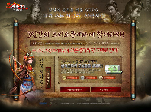 Àü·« SRPG »ï±¹Áö·«ÀÇ ¿ÀÇ º£Å¸ Å×½ºÆ®(°ø°³ ¼ºñ½º)°¡ 8¿ù 18ÀÏ(¼ö)ºÎÅÍ ½ÃÀ۵ȴÙ. (ñ»)À¯´Ï¾Æ³ª(´ëÇ¥ À±´ëÁÖ)´Â Àڻ簡 ¼ºñ½ºÇÏ´Â <»ï±¹Áö·«>ÀÌ ÀÌ´Þ 18ÀϺÎÅÍ ¿ÀÇ º£Å¸ Å×½ºÆ®¸¦ ÁøÇàÇÑ´Ù.