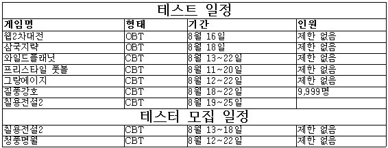 À¥°ÔÀÓ ±â´ëÀÛ <Ä¥¿ëÀü¼³2>ÀÇ Ã¹ ºñ°ø°³ Å×½ºÆ®´Â ¿À´Â 8¿ù 19ÀϺÎÅÍ 25ÀϱîÁö 7Àϰ£ ÁøÇàµÇ¸ç, ±¹³» À¯Àúµé¿¡°Ô ù ¼±À» º¸ÀÌ´Â ¸¸Å Ãʱâ ÁøÀÔÀ庮 üũ¸¦ ºñ·ÔÇØ À¯Àú ÆíÀǼº Á¡°Ë, ÄÜÅÙÃ÷ Á¡°Ë, ¼¹ö ¾ÈÁ¤È ÀÛ¾÷ µî ´Ù¾çÇÑ ºÎºÐÀ» Á¡°ËÇÒ °èȹÀÌ´Ù.