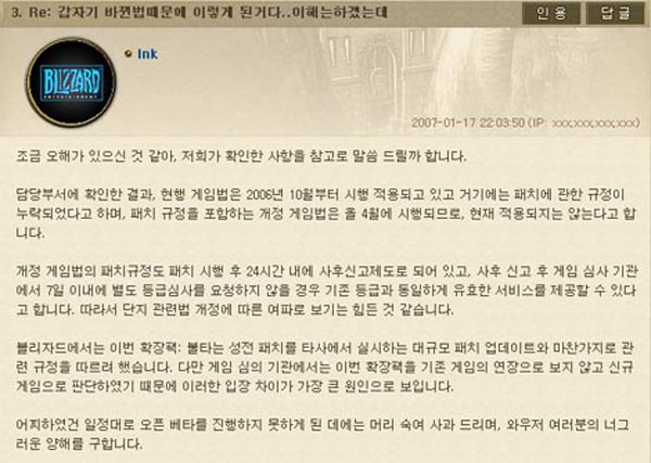 ÀÌ ¶§¹®¿¡ ¿©·¯°÷¿¡¼ ¸¹Àº ¸»µéÀÌ ³ª¿À°í ÀÖ½À´Ï´Ù. À¯Àúµé¿¡°Ô¼ ¸¹Àº ºñ³À» ¹Þ°í ÀÖ´Â ºí¸®ÀÚµåÄÚ¸®¾Æ´Â ¡°ÀÌÀüºÎÅÍ WOW¿¡ ´ëÇÑ ¿µµîÀ§ÀÇ ½É»ç°¡ ±²ÀåÈ÷ ´Ê¾ú´Ù. ¿µµîÀ§°¡ ´ÊÀå ½É»ç¸¦ Çϱ⠶§¹®¿¡ ¿ø·¡ ¹ßÇ¥Çß´ø ÀÏÁ¤ÀÌ ´Ê¾îÁ³´ø °ÍÀÌÁö, ÀϺηΠ´ÊÃá °ÍÀÌ ¾Æ´Ï´Ù¡±¶ó¸ç À¯Àúµé¿¡°Ô ÇØ¸íÀ» Çϰí ÀÖ½À´Ï´Ù.