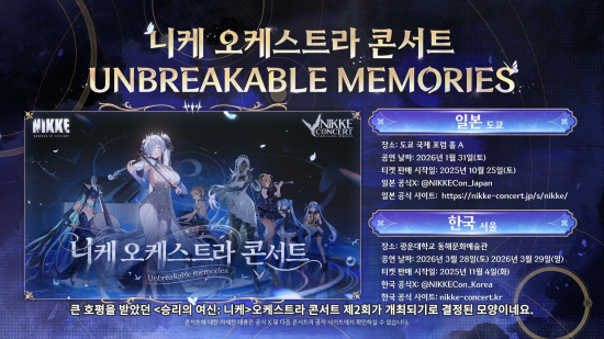 µÎ ¹øÂ° ¿ÀÄɽºÆ®¶ó ÄܼƮ 'UNBREAKABLE MEMORIES'°¡ ¿¹°íµÆ´Ù. Çѱ¹Àº 2026³â 3¿ù 28Àϰú 29ÀÏ ¾çÀÏ ±¤¿î´ëÇб³¿¡¼, ÀϺ»Àº 2026³â 1¿ù 31ÀÏ µµÄì ±¹Á¦ Æ÷·³¿¡¼ °³ÃֵȴÙ. ±¹³» °ø¿¬ ƼÄÏÀº 2025³â 11¿ù 4ÀϺÎÅÍ ÆÇ¸Å ½ÃÀÛÇÒ ¿¹Á¤ÀÌ´Ù.