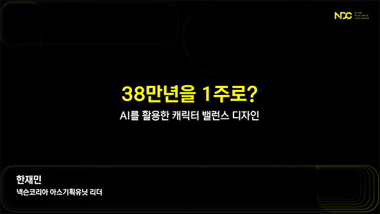 ³Ø½¼ °³¹ßÀÚ ÄÜÆÛ·±½º(NDC) °³¸· µÑ° ³¯ÀÎ 6¿ù 25ÀÏ, ³Ø½¼ ÇÑÀç¹Î ±âȹ ¸®´õ´Â ¡®38¸¸³âÀ» 1ÁÖ·Î? - AI¸¦ Ȱ¿ëÇÑ Ä³¸¯ÅÍ ¹ë·±½º µðÀÚÀΡ¯À̶ó´Â ÁÖÁ¦·Î ¼¼¼ÇÀ» ÁøÇàÇß´Ù. °¿¬¿¡¼´Â ¼öÁýÇü RPG¿¡¼ ¹ß»ýÇÏ´Â ¼ö¸¹Àº Á¶ÇÕ°ú ¹ë·±½º ¹®Á¦¸¦ AI ±â¼ú·Î ¾î¶»°Ô ÇØ°áÇß´ÂÁö¿¡ ´ëÇÑ ½ÇÁ¦ »ç·Ê°¡ ¼Ò°³µÆ´Ù.
