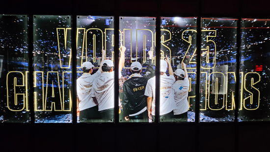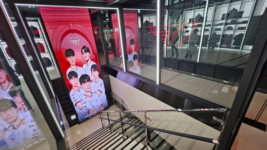 ÀÌ·¯ÇÑ ÄܼÁÆ®´Â ¸ÅÀå¿¡ óÀ½ ¹ßÀ» µé¿©³õ´Â ¼ø°£ºÎÅÍ ´À³¥ ¼ö ÀÖ´Ù. T1À» ´ëÇ¥ÇÏ´Â ÇÁ·Î°ÔÀÓ ±¸´ÜÀÎ '¸®±× ¿Àºê ·¹Àüµå' Á¾¸ñ ¼±¼öµé Æ÷½ºÅͰ¡ µð½ºÇ÷¹ÀÌµÈ °è´ÜÀ» µû¶ó ¿Ã¶ó°¡°Ô µÇ¸ç, °è´ÜÀÇ ³¡ÀÚ¶ô¿¡¼­´Â T1 »ó¡»öÀÎ °ËÀº»ö°ú Àû»ö, ±×¸®°í °¢Á¾ Á¶Çü¹°°ú ³×¿Â»çÀÎÀ¸·Î ²Ù¸çÁø ÀÔ±¸°¡ ¸ð½ÀÀ» µå·¯³½´Ù.