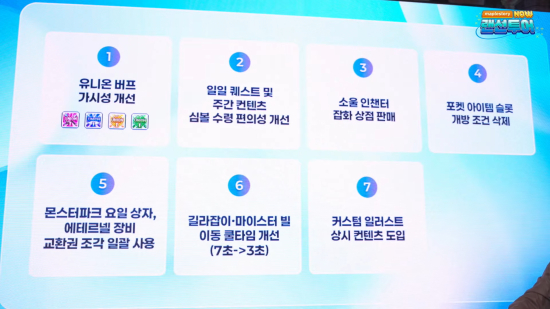 À̿ܿ¡ ½Å±Ô °¡¹æ Ãß°¡, °æÇèÄ¡ ÄíÆù °³Æí, ÀÌÆåÆ® ¿É¼Ç Ãß°¡, Àç»ç¿ë ´ë±â½Ã°£ ¹× ¹öÇÁ ½Ã°£ Ç¥±â °³¼±, ¿¬½À¸ðµå ¹öÇÁ Ãß°¡, Ä¿½ºÅÒ ÀÏ·¯½ºÆ® »ó½Ã ÄÜÅÙÃ÷È, Æ÷ÄÏ ½½·Ô °³¹æ Á¶°Ç »èÁ¦, À¯´Ï¿Â ¹öÇÁ °¡½Ã¼º °³¼± µî ´Ù¾çÇÑ ½Ã½ºÅÛ °³ÆíÀÌ ÀÌ·ïÁú ¿¹Á¤ÀÌ´Ù.