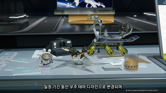 ¶ÇÇÑ À̺¥Æ®¸¦ ±â³äÇϱâ À§ÇØ ÀϽÃÀûÀ¸·Î Á¦°È£ ³» ÀϺΠ¿ÀºêÁ§Æ®°¡ ¿ìÁÖ¸¦ »ó¡ÇÏ´Â ¿ÀºêÁ§Æ®·Î º¯°æµÇ¸ç, ¹è°æ¿¡ ¿ìÁÖÁ¤°ÅÀåÀÎ '»ûº° ´ë±â Ç÷§Æû'ÀÌ ¼³Ä¡µÇ´Â µî ´Þ¶óÁø dz°æÀ» °¨»óÇÒ ¼ö ÀÖ°Ô µÈ´Ù.